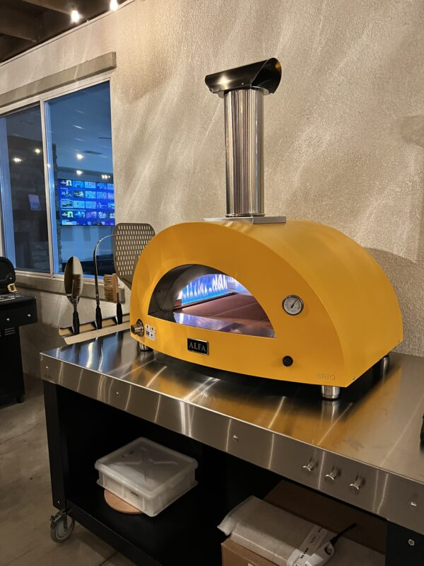 New Alfa Brio hybrid gas and wood pizza oven! Implement with complete Pizziola kit (all tools, dough boxes, thermometer, apron, and cookbook).