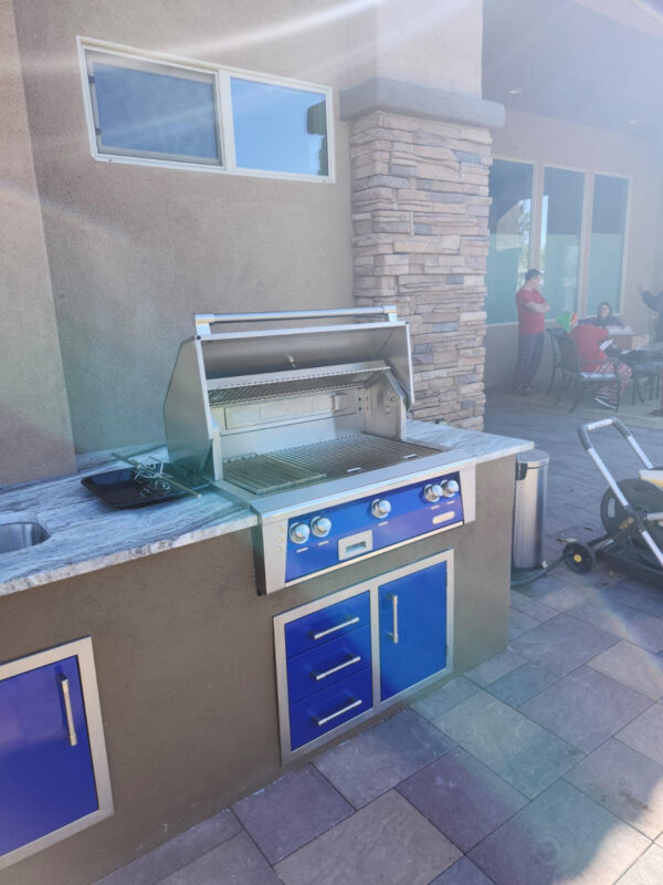 36” Alfresco Grill with Sear Zone and 32″ Alfresco three drawer/access door combo with 17” Alfresco access door under sink – ALL IN ‘ULTRAMARINE BLUE-GLOSS’