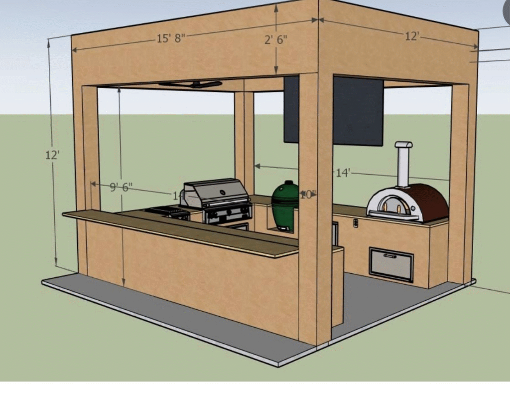 “4K lattice four post shade structure. Napolean gas grill with access door.”